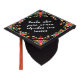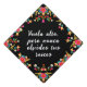 Elegant Mexico inspired bright coloured floral designs with the quote "Vuela alto, pero nunca olvides tus raíces." This translates to "Fly high, but never forget your roots," which beautifully combines aspiration with a nod to one's heritage, perfect for a Mexican-themed graduation cap decoration.