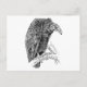 A menacing looking vulture, beautifully sketched in black and white detail. He is resting on a large branch, no doubt waiting for his next meal!