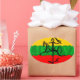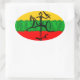 A grunge shadow version of the classic Vytis symbol on top of the Lithuanian flag, and lettering. A very nice Lietuva bumper sticker.