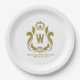 W Monogrammed Gold Crest Paper Plate