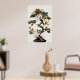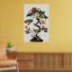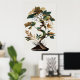 Wabi-Sabi art of a beautifully detailed tree with swirling branches and a variety of green and gold leaves standing elegantly against a neutral backdrop. The leaves display a blend of colours and patterns, adding depth and interest to the composition.