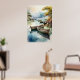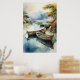 Poster of rowboats gently floating in a serene, turquoise body of water surrounded by rocky shores and lush foliage. The soft, diffused light creates an atmosphere of tranquillity and natural beauty.