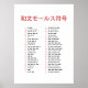 This poster presents kana characters with their corresponding Morse patterns in a clear, easy-to-read layout.