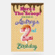 Fun melting ice cream waffle cone Here's the Scoop Birthday acrylic welcome sign, change the text yourself when ordering