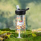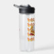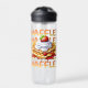 Personalized water bottle. Yummy stack of waffles covered in whipped cream and strawberries.