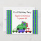 Une invitation amusante à l'anniversaire avec des wagons et des voitures colorés. Vert, bleu et rouge. Le wagon vert est rempli de ballons d'anniversaire colorés. Customisez avec toutes les informations de votre anniversaire selon vos besoins.