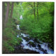 View of Wahkeena Falls from the base at the parking lot in the Columbia River Gorge, Oregon. Beautiful green ferns & forest surrounding the steady flow of this waterfall.