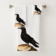 Raven Black Bird , Crows, Blackbirds Bathroom Towel Set - Raven perched on a tree log black and white themed home decor bath towels. Ready to give a proper greeting to your guests with your spirit animal. The Raven is a clever bird indeed. The background you can customize. text, colour, style of your totem and love of this bird perched on a tree log wild nature.