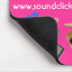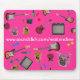 A colourful mousepad decorated with the band's instruments and web site address