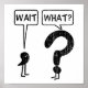 Wait, What. Illustration of a comma and a question mark. Funny idiom exclaimed when someone suddenly realizes something isn't right. The comma waits, the question mark asks. Get it?