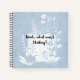 Simple light blue cover notebook with a texst "Wait, what I was thinking" and a retro design with an open notebook cover and florals is a perfect journal or notebook for to-do lists, memory keeping, morning journalling, manifesting, family notebook, art journalling etc.