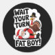 Wait Your Turn Fat Boy Funny Turkey Santa Thanksgi Classic Round Sticker