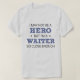 I may not be a hero, but I'm a Waiter so close enough humourous word art in sans-serif and doodle cross-hatch font lettering in black and dark royal blue with two distressed accent stars.