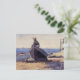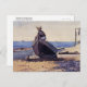 A fine art postcard with the watercolor painting, Waiting for Dad, also known as Longing (1873), by Winslow Homer (1836-1910), an American artist. An ocean landscape with a young boy sitting on rowboat by the shoreline on a sandy beach.
