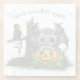 Waiting for Halloween , Cute Bat and Raven Glass Coaster