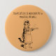 A working cat waitress serves up woodchuck pie with mouse tail sprinkles on this black and tan cat pin back button-party-favour