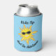 Cute fun can cooler of a cool happy yellow sun wearing dark shades and a big cheeky grin. Above and below the sun are the words "Wake Up And Be Awesome" in black text. This funny happy sticker will put a smile on anyone's face.