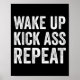 Wake Up Kick Repea,funny Quote Workout Motivation Poster