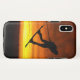 A phone case for the wakeboarding/sunset enthusiast. It features a black silhouette of a wakeboarder with a gorgeous sunset in the background.