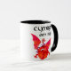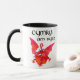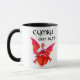 A white mug with a black rim and handle, emblazoned with a red dragon and the slogan, 'Cymru am Byth' (Wales Forever!). For rugby fans and all who love Wales!