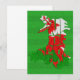 Typographic calligram design of a map of Wales made out of the words 'Home of Rugby', and a cool, grunge look Welsh flag within the words.