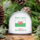 Personalized snow globe featuring the Welsh flag and the word WALES of below in flag colours. Above, add a name in green letters. Lovely holiday gift or stocking stuffer.