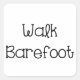 Text sayings T-shirts, mugs, bags, cards, stickers, key chains, wall clocks, notebooks, keepsakes, magnets, buttons, and more with black or white text that reads Walk Barefoot! You can change the background colour on these text sayings items to whatever colour you want!