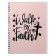 This notebook is perfect for capturing your thoughts, dreams, and inspirations. This unique notebook features a soft pastel pink cover adorned with the inspiring phrase "Walk by Faith" in a cute black script font. Accentuated with fun black hearts, flowers and a cross, this design would be appreciated by several. Ideal for journalling, note-taking, or as a thoughtful gift for that person of faith.