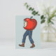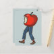 Walking red apple man with pants funny, artistic, whimsical and playful Postcard on a dusty green background.