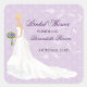 A bride serenely walks down the aisle on this lovely bridal shower sticker. The background is a pretty damask purple pattern overlaid with swirly floral vines, while the bride's bouquet and earrings match the purple. Available in alternate colours with matching products and options for different bride ethnicities. Please contact this store for customizing this sticker to specific bridal colours.