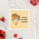 Digital painting of a walking tiger, with a placeholder for a name, and Happy Birthday, is printed on custom paper napkins.