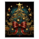 Wall Art With Christmas Tree And Large Red Bow Poster