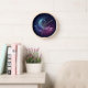 This elegant clock features a serene and modern design, with a gradient background transitioning from deep indigo to black, creating a cosmic atmosphere. Scattered glowing stars and a large, abstract crescent moon with intricate patterns and textures take centre stage. Accented with subtle golden touches, this clock brings a sense of wonder and tranquillity to any space. Perfect for adding a touch of sophistication and peaceful energy to your home or office, it is a timeless piece that blends modern aesthetics with celestial beauty.