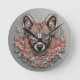 Wall Clock, 8" “Floral Majesty wolf Clock” Round Clock
