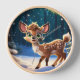A charming fawn stumbles upon a winter wonderland, its eyes wide with wonder as snowflakes dance around it.