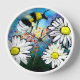 A wall clock with a print of my whimsical bumble bee and daises art.