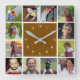 A colorful wall clock with 12 personal photos placed around the clock face of a dark color. The photos are easily replaced with you own by using the template.