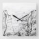 Wall Clock with canyon sketched in black and white