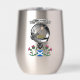 Shiny silver Wallace clan badge on a stainless steel thermal tumbler all set for any of your hot or cold drinks! Be ready for your next clan gathering, picnic, highland games, BBQ or poolside! Featuring a tartan set of bagpipes on the back and you can also personalize with a short message!