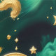 Elevate your space with this Emerald Celestial Moon wallpaper, inspired by the enchanting beauty of the moon glowing within a rich emerald cosmic atmosphere. Deep green tones combined with celestial elements create a luxurious, calming, and nature-inspired aesthetic.
