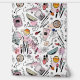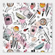 Wallpaper with a modern pattern of various cute cosmetic items.
