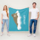 Create a cool personalized gift for someone who loves walruses. This fleece blanket has an illustration of a walrus floating on a chunk of ice or an iceberg. The realistic style illustration of the walrus is in brown against a turquoise blue background. It's ready to be personalized with a name or other text below the graphic in white lettering.