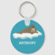 Create a cool personalized gift. This keychain has an illustration of a walrus floating on a chunk of ice or an iceberg. The realistic style illustration of the walrus is in brown against a turquoise blue background. It's ready to be personalized with a name or other text below the graphic in white lettering.