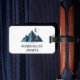 A minimalist outdoor-themed design showcasing a jagged mountain range under a crescent moon and star, evoking a sense of adventure and travel.