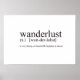 Wanderlust - A very strong or irresistible impulse to travel. This poster features a dectionary style design.