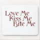 Mouse Pad with Love Me, Kiss Me, Bite Me