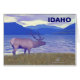 Les tons bleus dominent dans cette image. Un wapiti, également connu sous le nom de wapiti, sur les rives du lac Pend Oreille dans le manche de l'Idaho. Le texte "IDAHO" apparaît également.