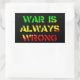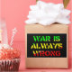 War Is Always Wrong stenciled in green, yellow, and red on black.