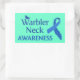 Warbler Neck affects birders each spring season, coinciding with migration and heightened birdwatching activities. This original design features the cerulean blue warbler neck awareness ribbon, which is partially transformed into a feather on one side. Show your support for warbler neck awareness with this original design which also features a warbler (looking up, of course) in silhouette.