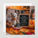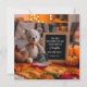 fall-themed pregnancy announcement features a cozy, seasonal setup complete with rich fall colours, glowing warm lights, and a soft knitted bear toy sitting sweetly beside a customizable letter board revealing your big news. Surrounded by plush pumpkin accents and rustic decor, this heartwarming flat-lay captures the magic of fall and the joy of your growing family. Ideal for social media announcements, printed cards, or keepsake albums.